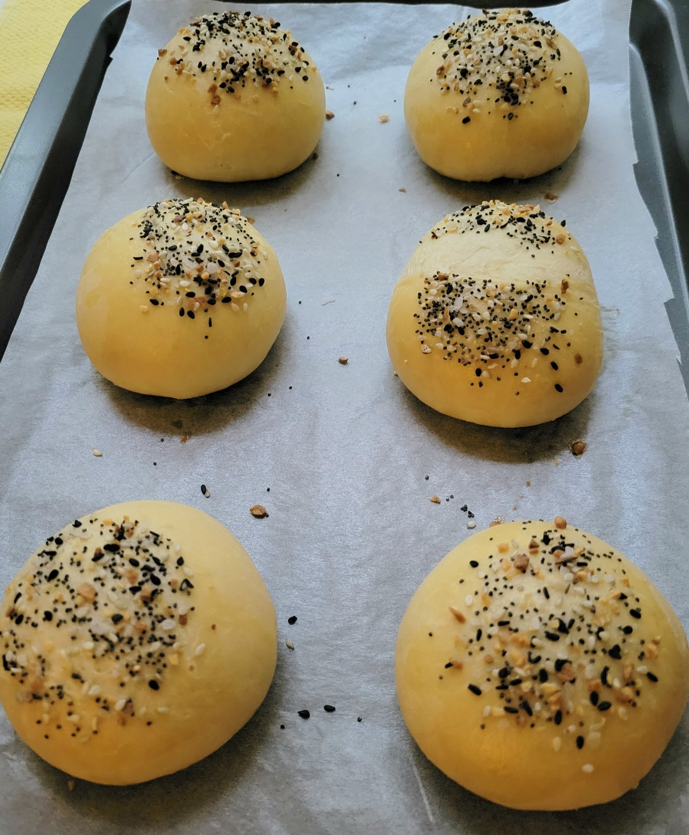 I baked everything bagel bao buns from the book Mooncakes & Milk Bread.