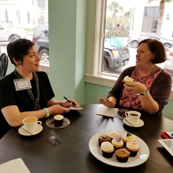 These are the most illustrative pictures from the Cupcakes and Blue Sky tour stop in Houston. There were cupcakes and interviews at a neighborhood bakery — textbook fieldwork. Next stop: ❄ ☔ in Minnesota.