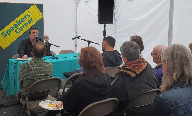 That was reason enough for me to take a seat as Louis Bayard discussed his 2016 novel Lucky Strikes. During his remarks, he mentioned his affinity for white noise and black tea. Those two things are so integral to my being I can’t imagine life without them. I was compelled to talk to Bayard after the reading.