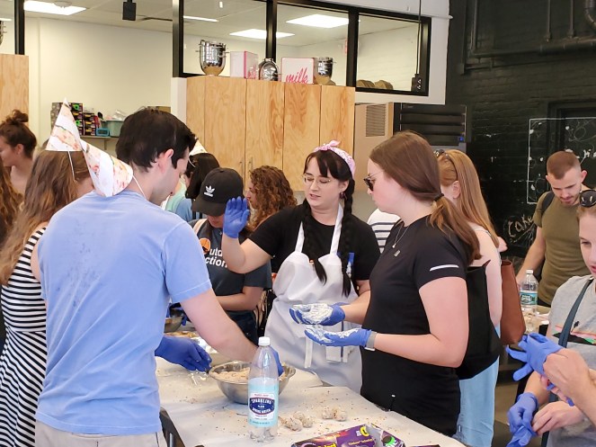 Tosi is best known for Milk Bar pie, layer cakes with unfrosted sides, and cake truffles. The latter are balls of cake scraps repurposed into an explosive best-seller. The public was invited to make them at the store’s June 30 birthday party.