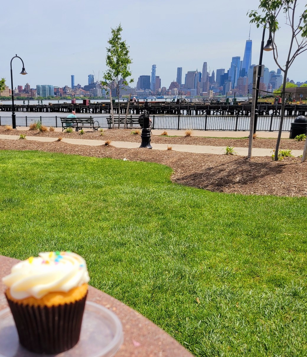 Equipped with a box containing a vanilla cupcake, a classic cannoli, and a peanut butter cannoli, my research specimens and I worked remotely from a riverfront park with views of New York. Given the tristate location, I’m classifying this as Cupcakes in the Delicious Metropolis fieldwork.