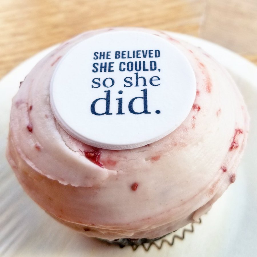 Cupcakes get the last word. An Instagram post about today’s Women’s Entrepreneurship Day Summit states, “Believe you can and you are halfway there.” Sprinkles conveyed a similar message on a 2019 charity cupcake benefitting Step Up Women’s Network.