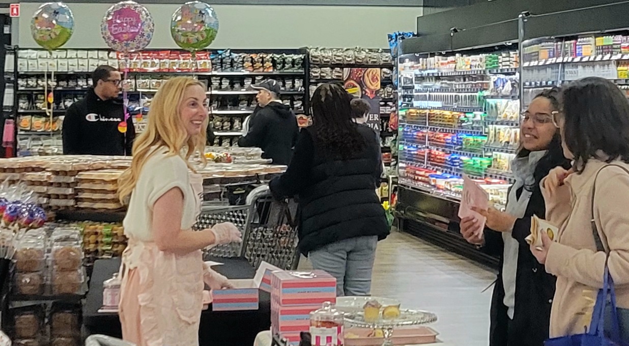 Crumbs owners Jason and Mia Bauer sampled cupcakes and cookies at the March 26 grand opening of a new ShopRite store in the New York City suburb of Elmsford.